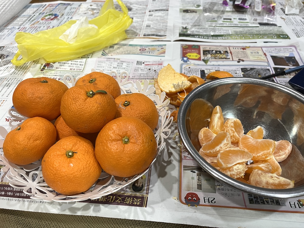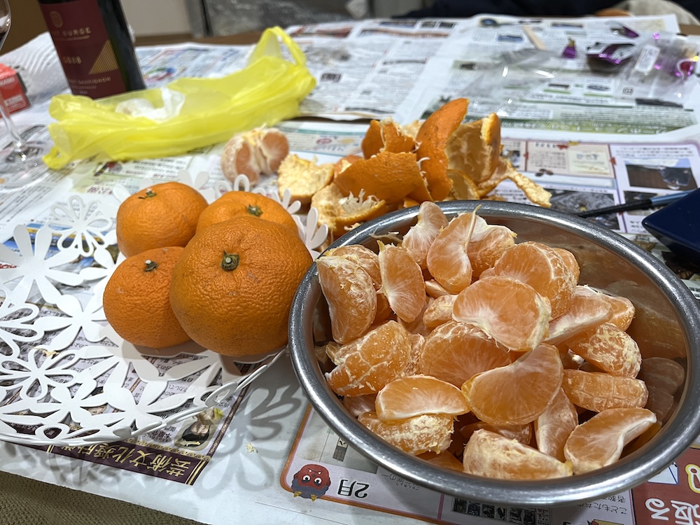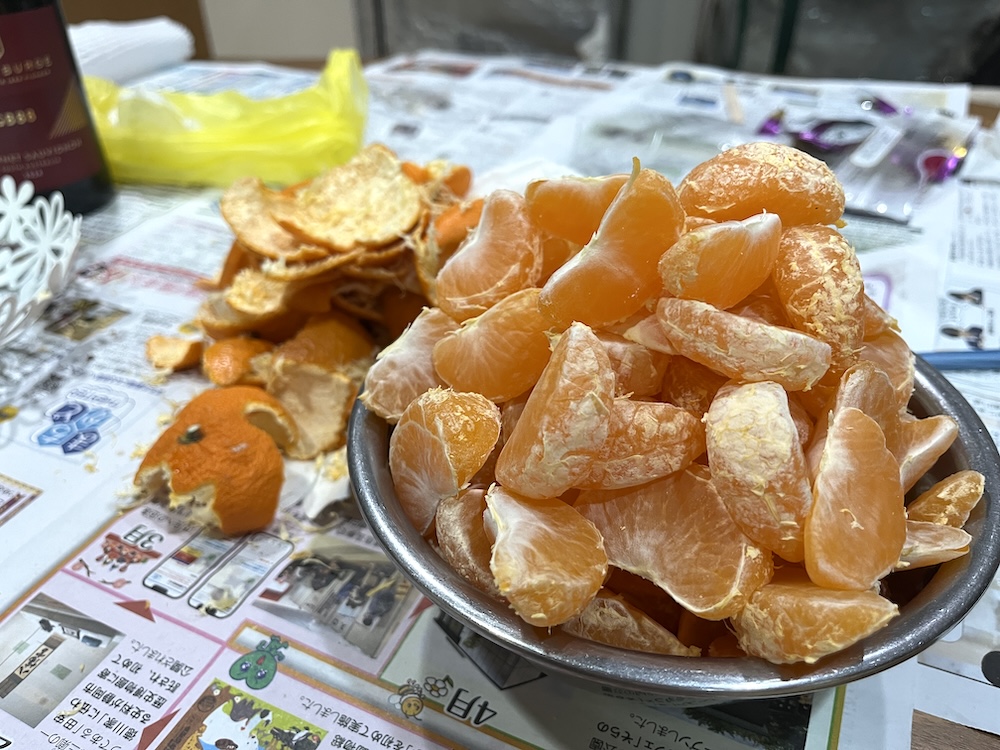 2025年のクリスマスに、夫がたくさんのみかんをもらってきました。