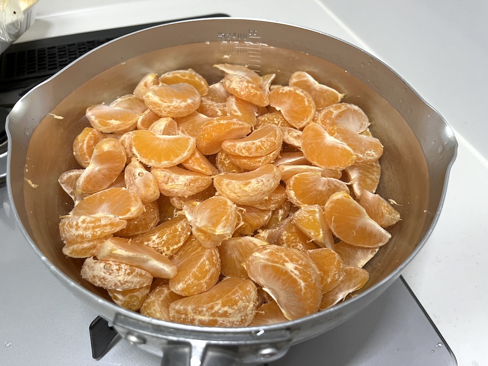 さぁ、いよいよみかんを茹でます。